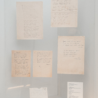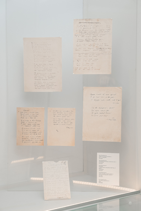- Фрагмент экспозиции «Улица Мандельштама: Осип и Надежда». Комната Осипа. Летопись жизни. Рукописи Мандельштама. ГМИРЛИ имени В.И. Даля