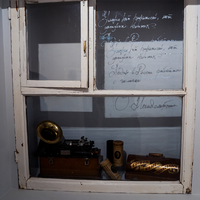 Надпись на оконном стекле: «У меня нет рукописей, нет записных книжек, нет архивов. У меня нет почерка, потому что я никогда не пишу. Я один в России работаю с голоса, а кругом густопсовая сволочь пишет. Какой я к черту писатель!» (Из разговора О.Э. Мандельштама с Ю.Н. Тыняновым)