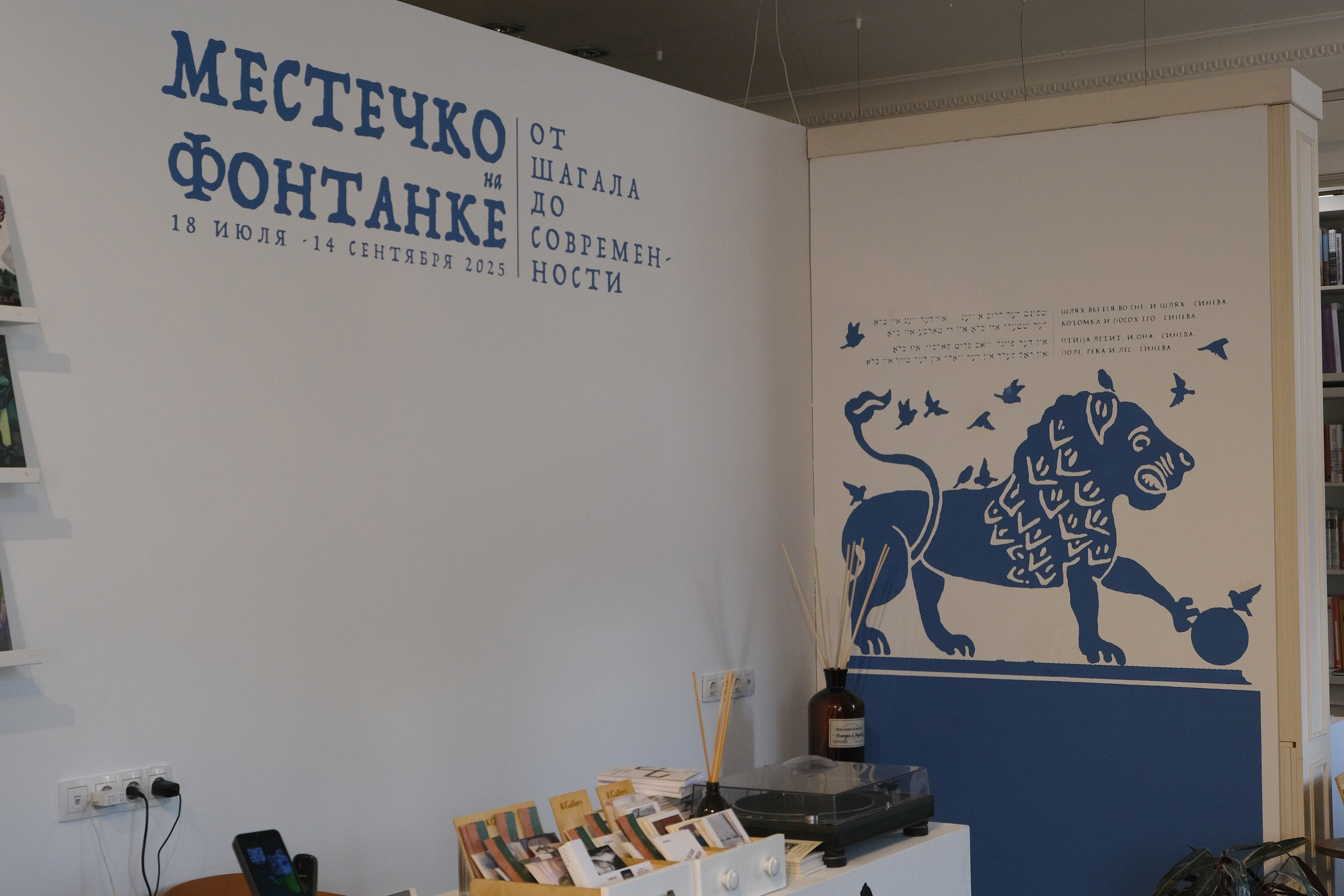 - Фрагмент экспозиции «Местечко на Фонтанке. От Шагала до современности». Дизайн – Валерий Полуновский. KGallery. Санкт-Петербург. 2025. Фото: Евг. Гершкович, А. Голубовский