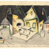 - Эскиз к спектаклю «Рекруты» (Театральная мастерская под руководством Л. И. Мурского при Евдомпросвете им. Я. Свердлова. Премьера в апреле 1934)