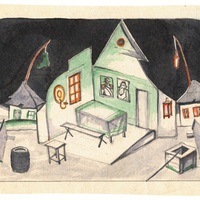 - Эскиз к спектаклю «Рекруты» (Театральная мастерская под руководством Л. И. Мурского при Евдомпросвете им. Я. Свердлова. Премьера в апреле 1934)