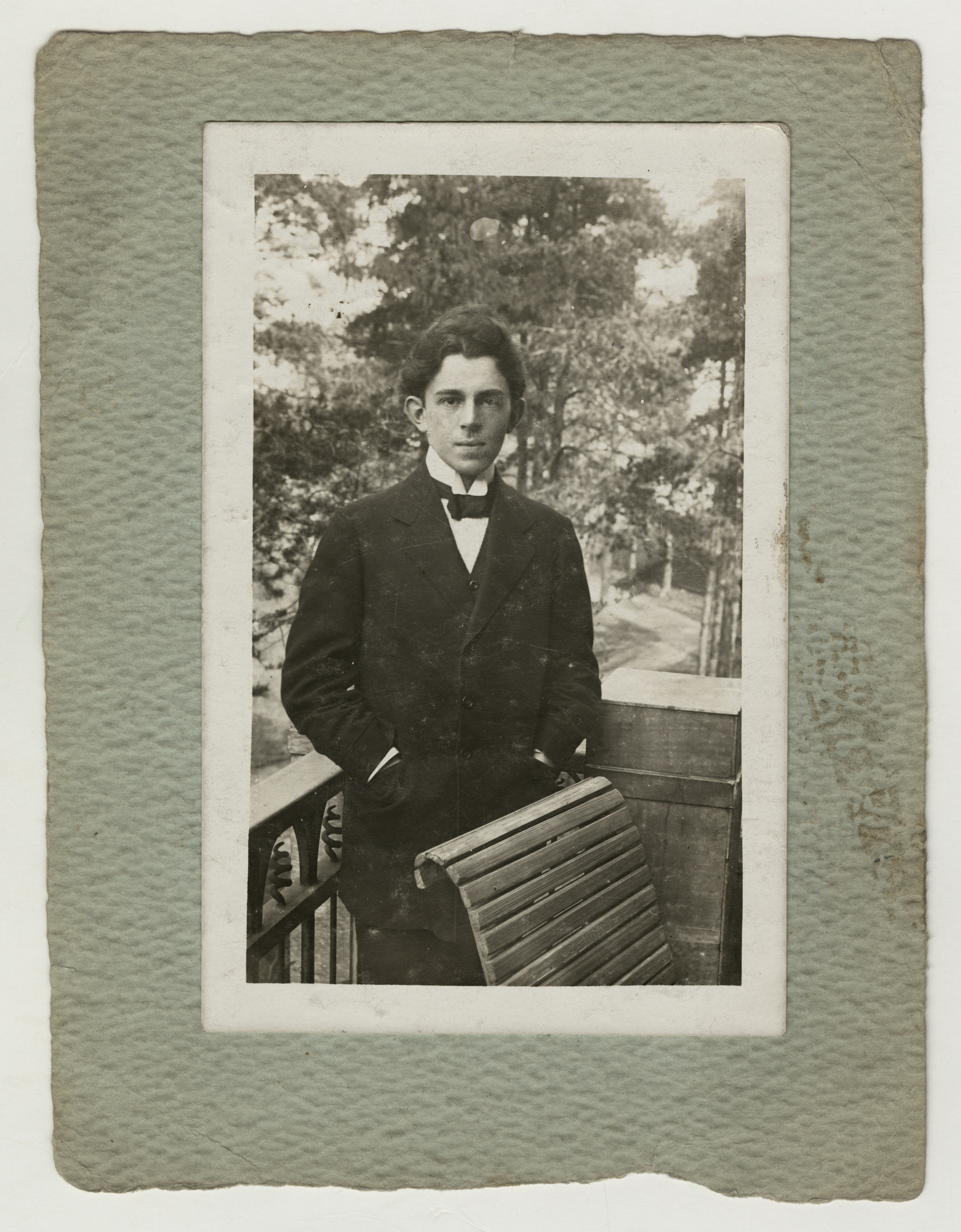 → → Фонды Морешет О.Э. Мандельштам Стоит на веранде. Место съемки: [Санкт-Петербург]. Сюжет Литература, Книгоиздание Этно-территориальный рубрикатор Ашкеназы Период создания 1910 Место создания Российская империя Материал, техника Фотобумага матовая, Картон, Фотопечать Размеры Подложка 17,5 х 13,3 см, фотография 13,8 х 9,0 см Правообладатель Государственный музей истории российской литературы имени В. И. Даля Номер в Госкаталоге 21686532 Входит в выставки Улица Мандельштама: Осип и Надежда