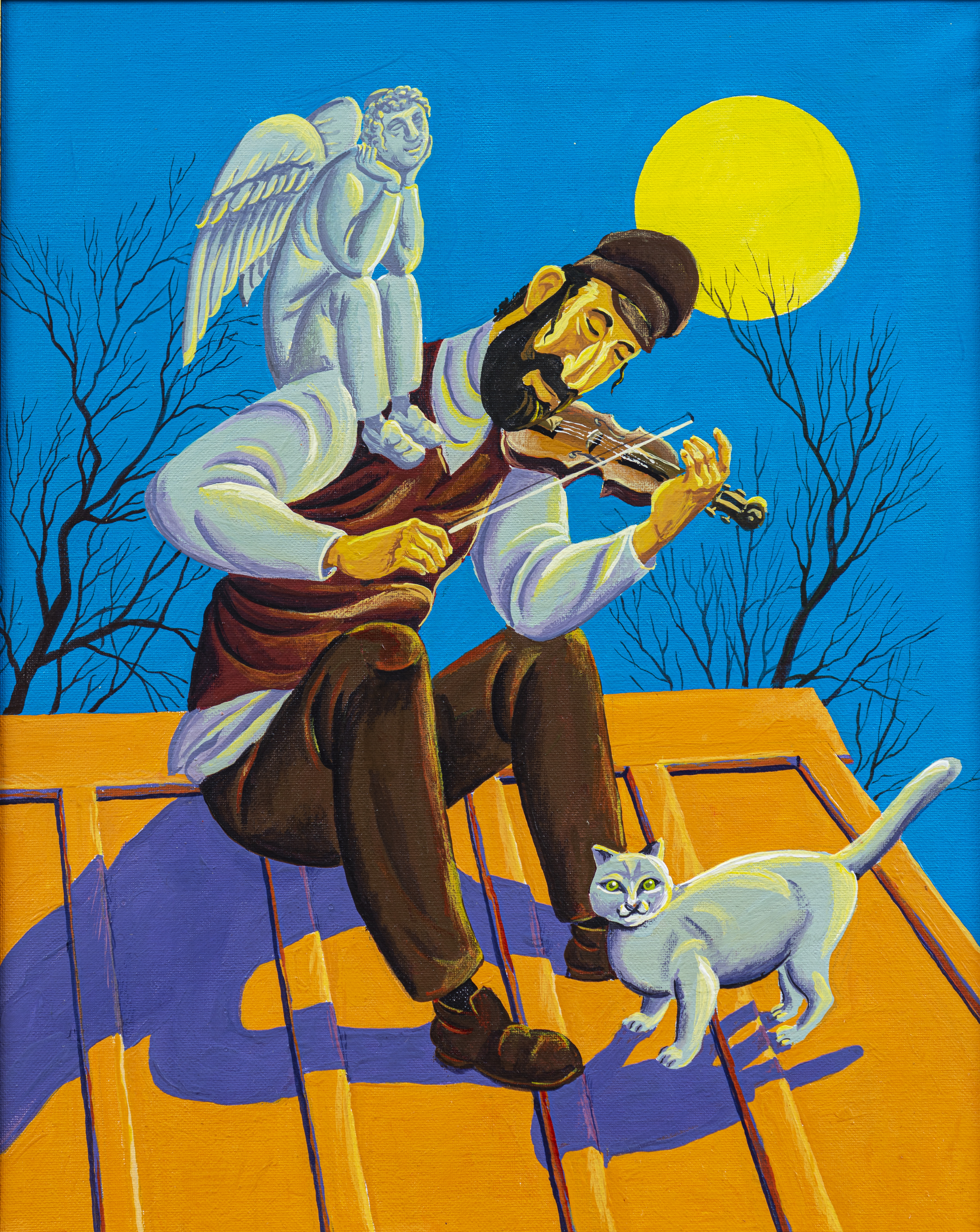 → → Фонды Морешет Одинокий скрипач на крыше Сюжет Изобразительное искусство Автор Цап Владислав Абрамович Период создания 2024 Материал, техника Холст, Акрил Размеры 40 х 50 см Правообладатель Из собрания В.А. Цапа Входит в выставки Еврейское счастье. Владислав Цап