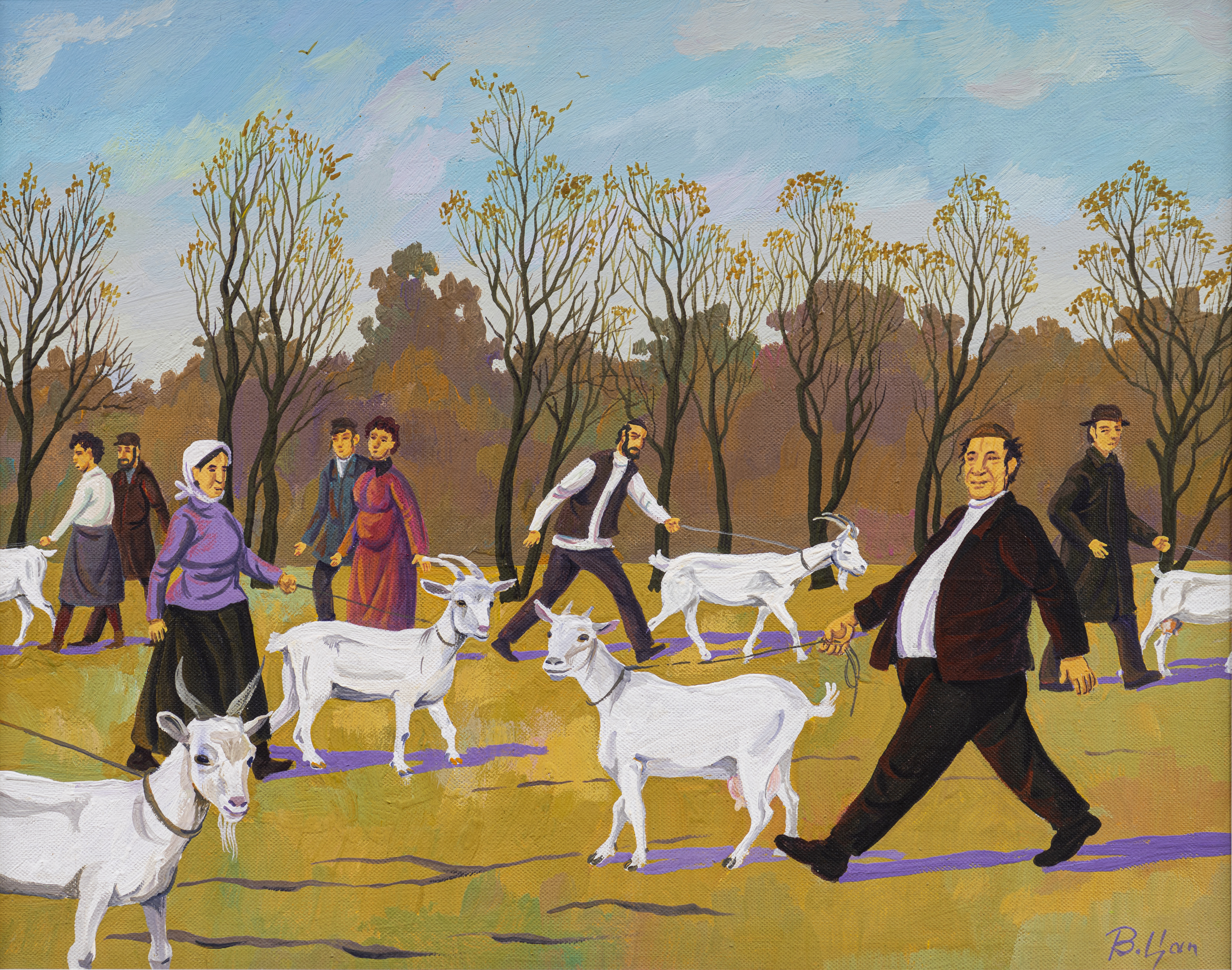 → → Фонды Морешет Осенняя прогулка с козами Сюжет Изобразительное искусство Автор Цап Владислав Абрамович Период создания 2024 Материал, техника Холст, Акрил Размеры 40 х 50 см Правообладатель Из собрания В.А. Цапа Входит в выставки Еврейское счастье. Владислав Цап