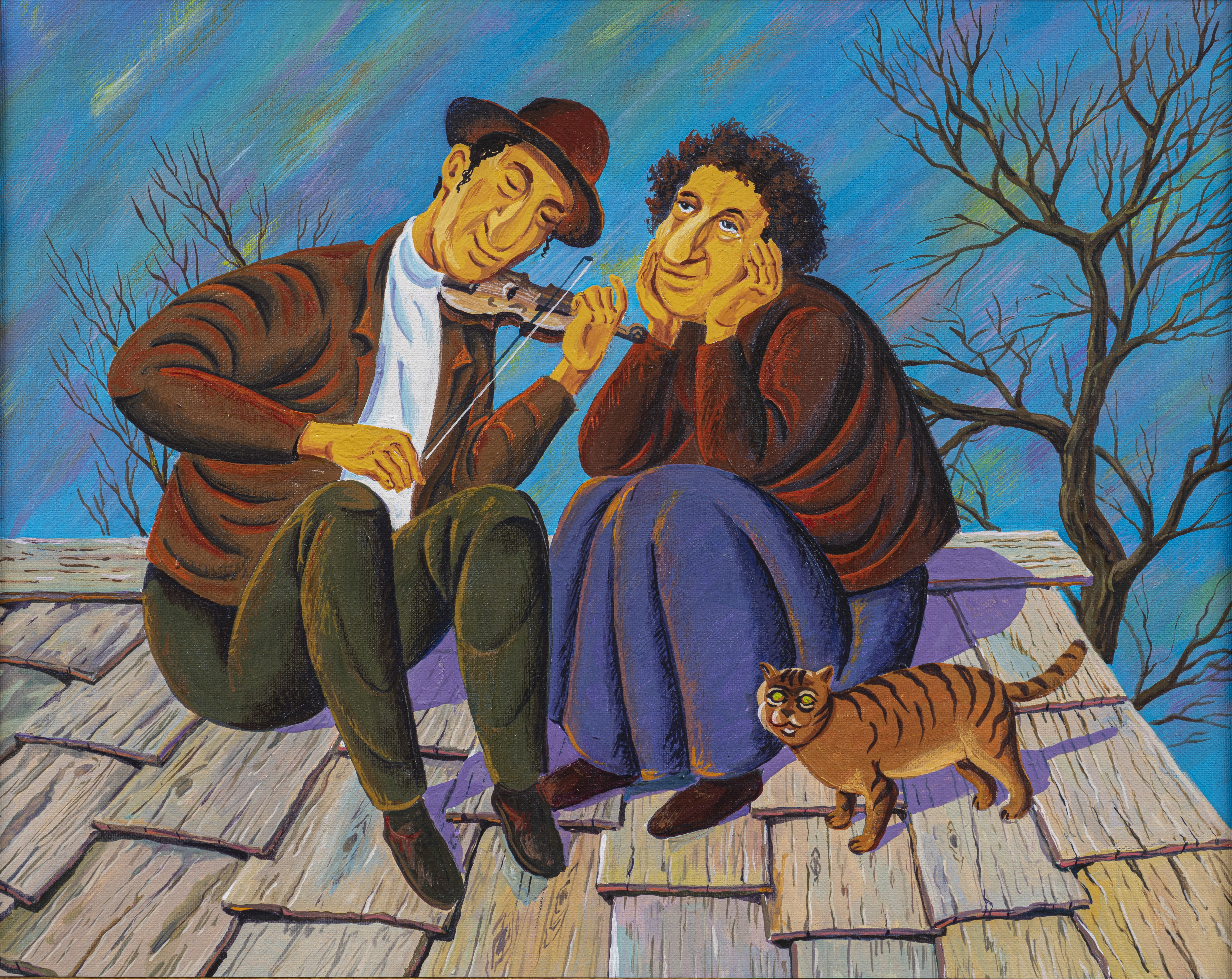 → → Фонды Морешет Свидание на крыше Сюжет Изобразительное искусство Автор Цап Владислав Абрамович Период создания 2022 Материал, техника Холст, Акрил Размеры 40 х 50 см Правообладатель Из собрания В.А. Цапа Входит в выставки Еврейское счастье. Владислав Цап