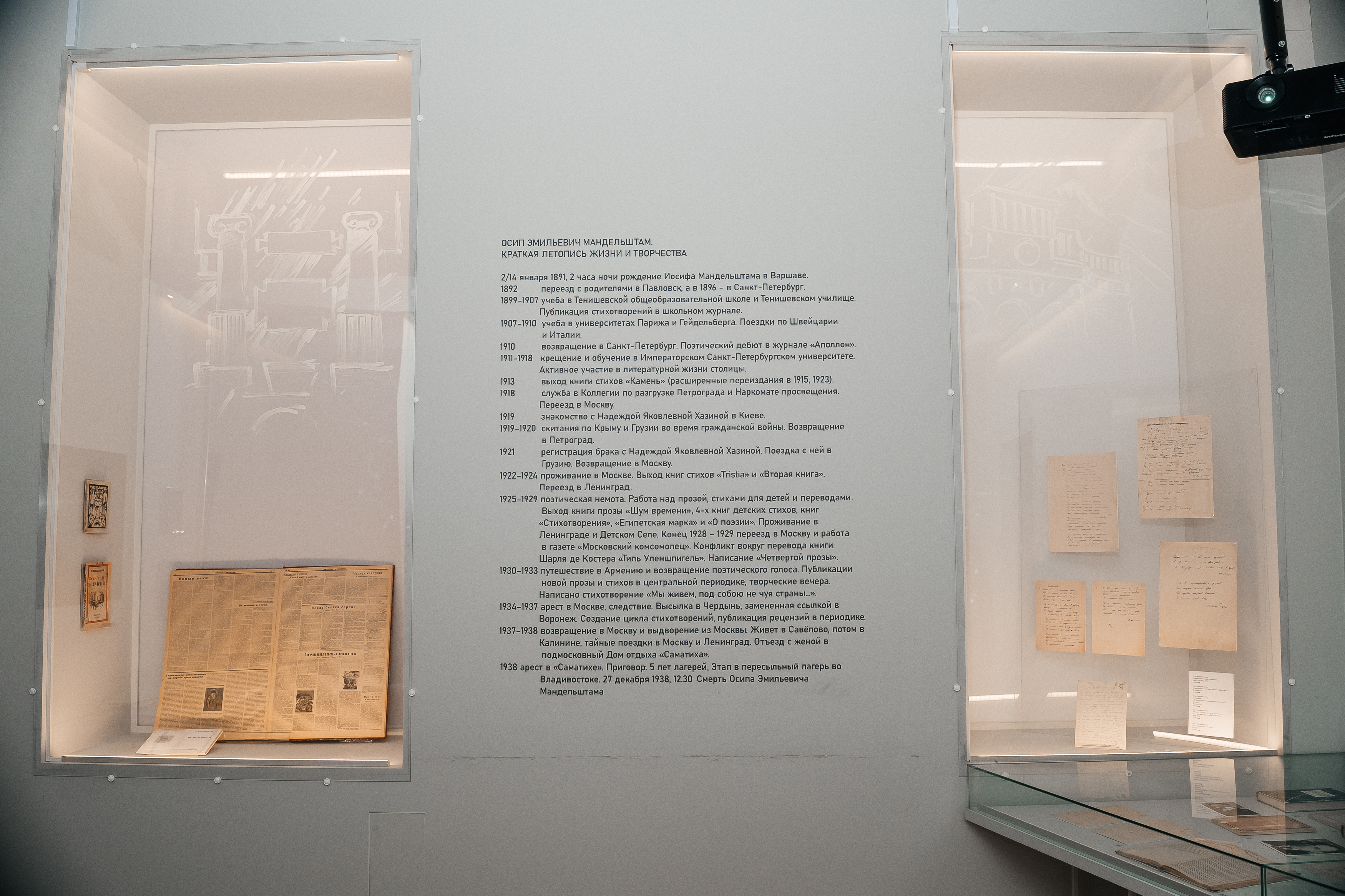 Фрагмент экспозиции «Улица Мандельштама: Осип и Надежда». Комната Осипа. Летопись жизни