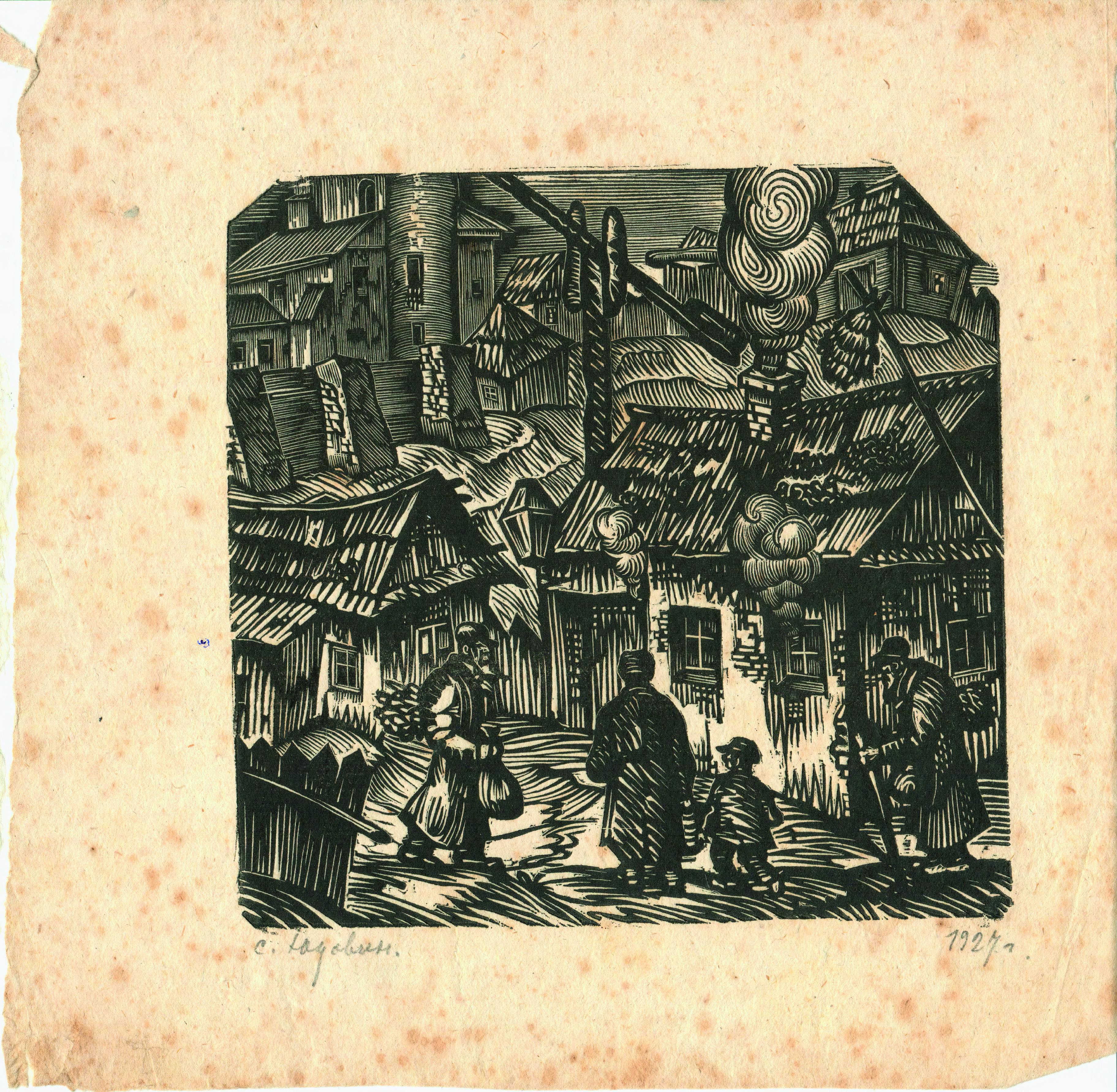 → → Фонды Морешет Из цикла «Еврейское местечко» Сюжет Изобразительное искусство, Традиция, Идентичность Этно-территориальный рубрикатор Ашкеназы Автор Соломон Юдовин Период создания 1926–1927 Материал, техника Ксилография Размеры 12,9 × 12,9 Правообладатель KGallery Входит в выставки Местечко на Фонтанке. От Шагала до современности