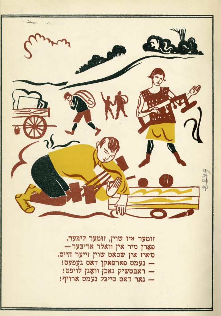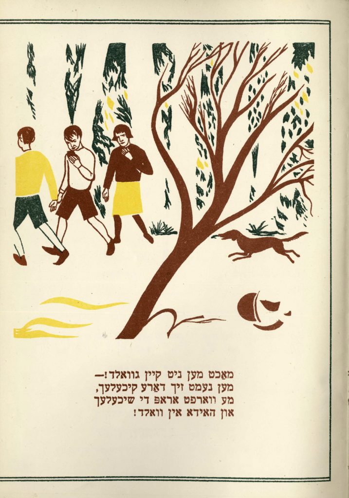 Фонды Морешет Лейб Квитко. За город (Киндерплац) Выходные данные: Квитко Л. Киндерплац (Детский лагерь). Художник Г. Фишер. Харьков: Центриздат, 1928 Автор Фишер Георгий Период создания 1928 Правообладатель Российская национальная библиотека, Санкт-Петербург, Ассоциация исследователей еврейской культуры «Петербургская иудаика» Входит в выставки Еврейская иллюстрированная книга в СССР. 1920-30-е годы