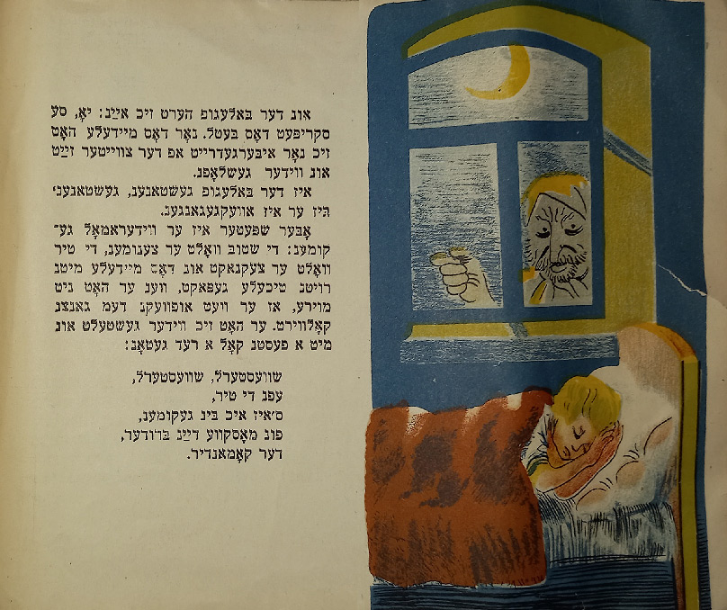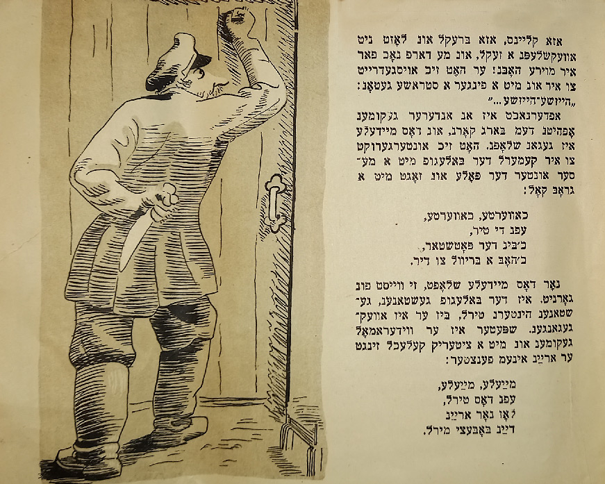 Выходные данные: Квитко Л. А майсе вегн мейделе митн ройтн тихеле (История о девочке в красной косынке). Художник А. Довгаль. Одесса: Культур-фарлаг ЦК ЛКСМУ, 1936