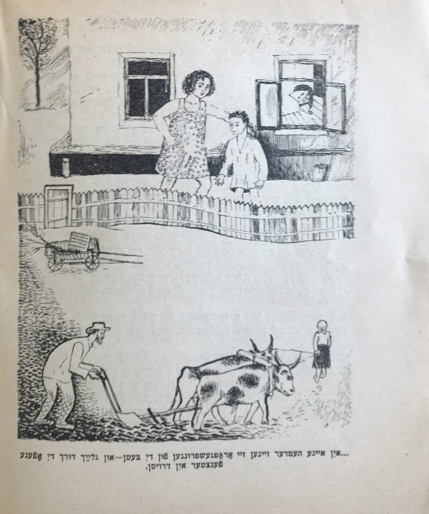 В книгу входят такие произведения, как «Арум шул (Возле школы)», «Татеши, татеши (Батюшка, батюшка)», «А майселе (Сказка)», «А гортн бешутфес (Огород на двоих)», «Ди шпенер (Щепки)», «Рейне ди юнге (Рейна молодая)», «Оксн (Быки)».