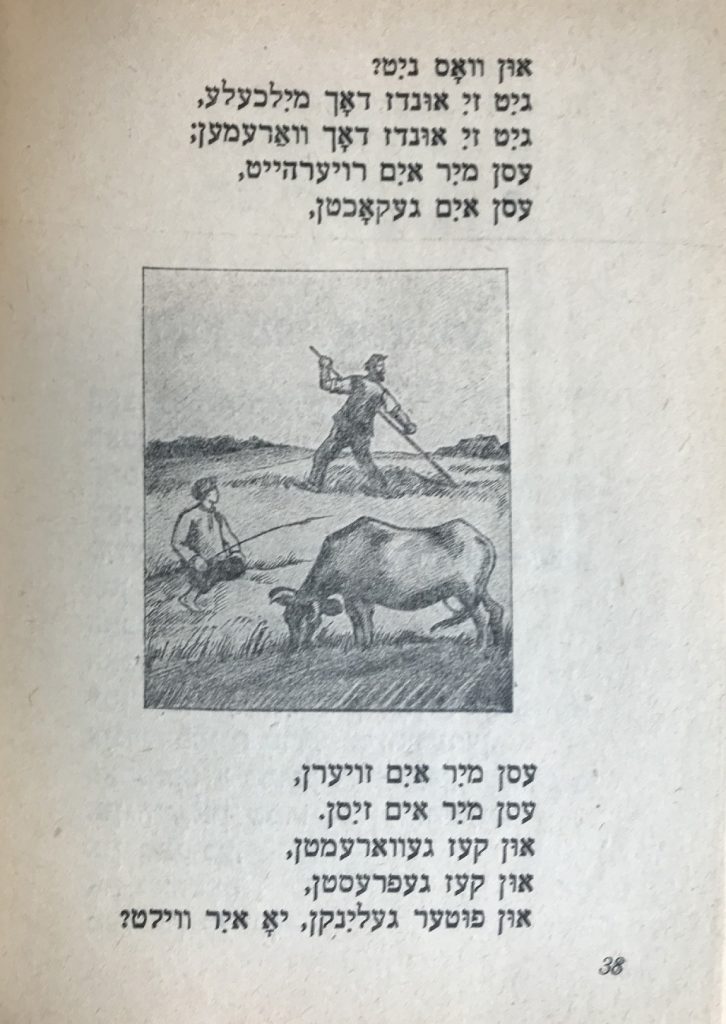 Выходные данные: Капнис И. От вер мир из хайнт гефелн (Вот кто мне сегодня нравится). Художник неизвестен. Минск: Центриздат народов СССР, 1930