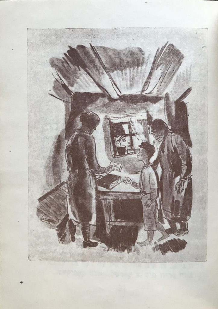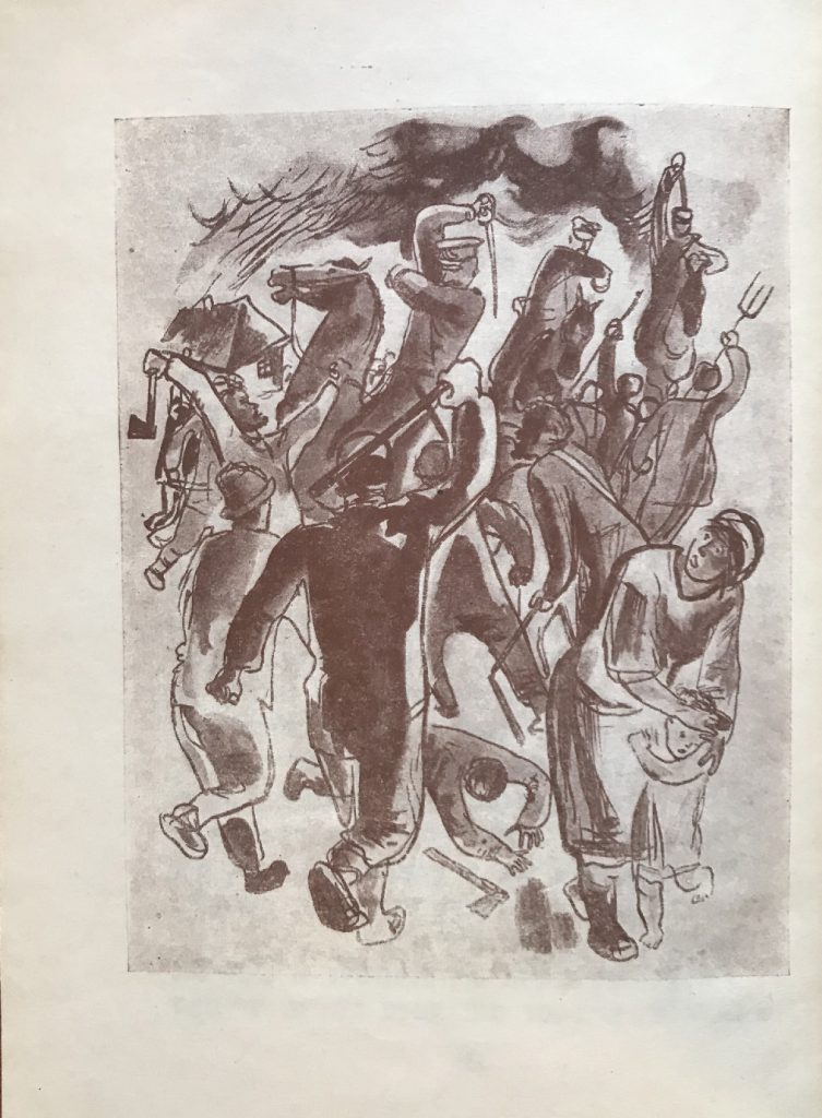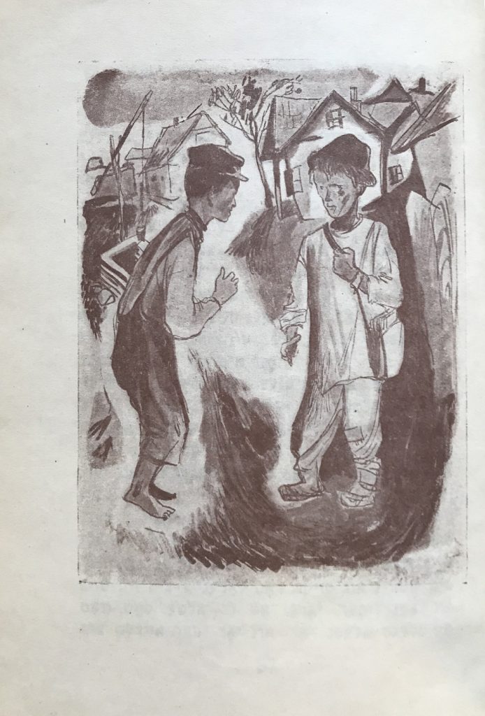 Выходные данные: Кипнис И. Хореве нестн (Разоренные гнезда). Художник Б.И. Крюков. Киев-Харьков: Госнацмениздат УССР, 1933