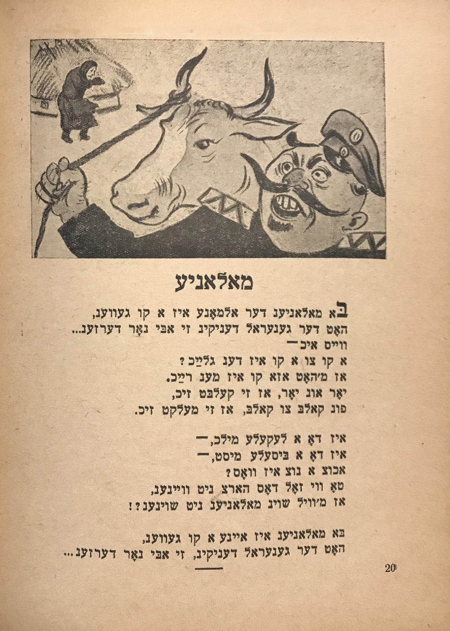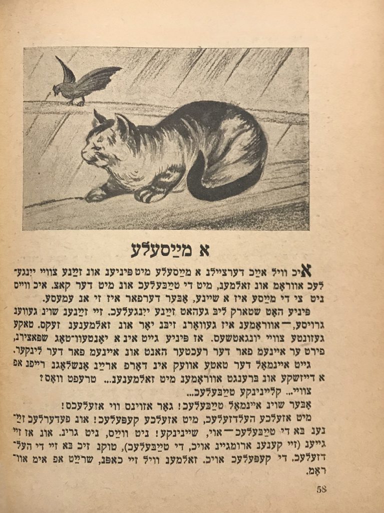 Выходные данные: Кипнис И. Цип, цип, бобинке (Цып-цып, бабушка). Художник М. Ройтман. Киев: Госнацмениздат Украины, 1938