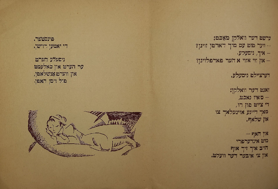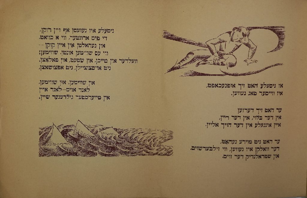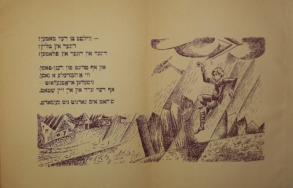 Фонды Морешет Ноях Лурье. На одной ножке Выходные данные: Ноях Лурье. Аф эйн фиселе (На одной ножке). Художник И. Чайков. Киев: Культур-Лиге, 1922 Автор Чайков Иосиф Период создания 1922 Правообладатель Российская национальная библиотека, Санкт-Петербург, Ассоциация исследователей еврейской культуры «Петербургская иудаика» Входит в выставки Еврейская иллюстрированная книга в СССР. 1920-30-е годы