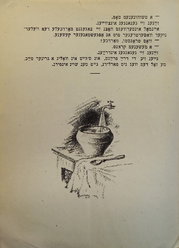 Фонды Морешет Герш Орланд. Три друга Выходные данные: Герш Орланд. Драй фрайнт (Три друга). Художник А. Каганер. Киев: Укргоснацмениздат, 1939 Автор Каганер А. Период создания 1939 Правообладатель Российская национальная библиотека, Санкт-Петербург, Ассоциация исследователей еврейской культуры «Петербургская иудаика» Входит в выставки Еврейская иллюстрированная книга в СССР. 1920-30-е годы