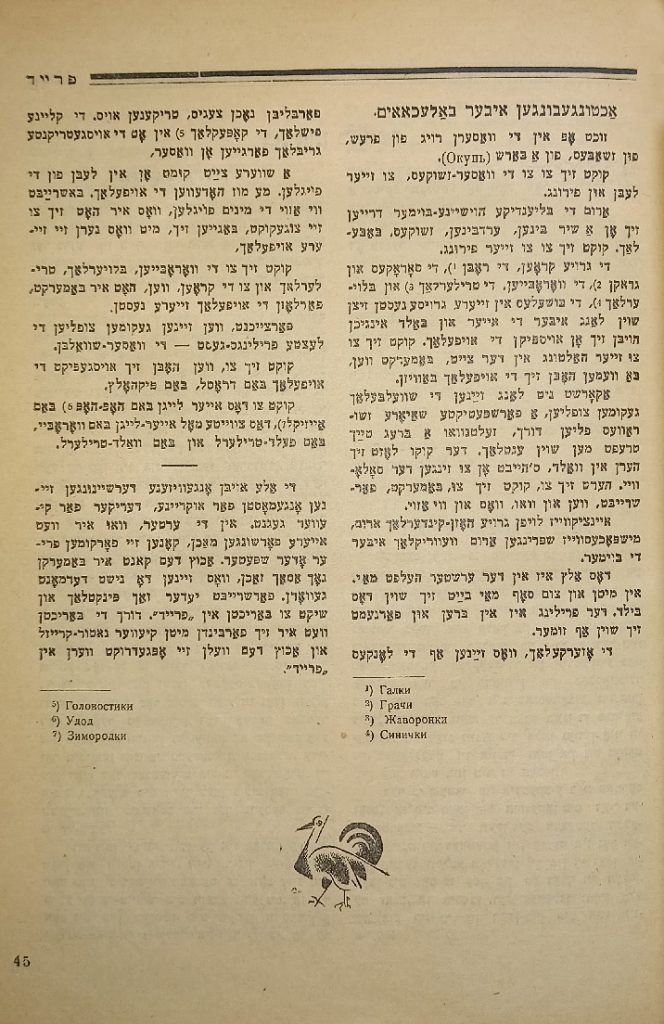 Фонды Морешет Радость. Выпуск 5-6 Выходные данные: Фрейд (Радость). Киев: Культур-Лиге. Выпуск 5-6 (март-апрель 1923) Автор Эпштейн Марк Период создания 1923 Правообладатель Российская национальная библиотека, Санкт-Петербург, Ассоциация исследователей еврейской культуры «Петербургская иудаика» Входит в выставки Еврейская иллюстрированная книга в СССР. 1920-30-е годы