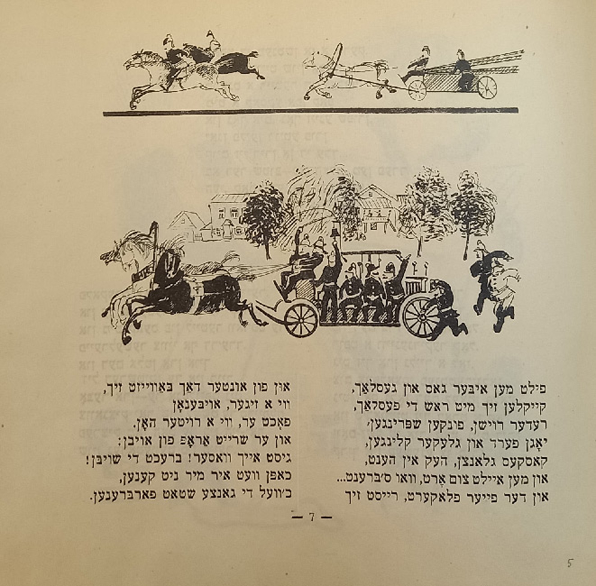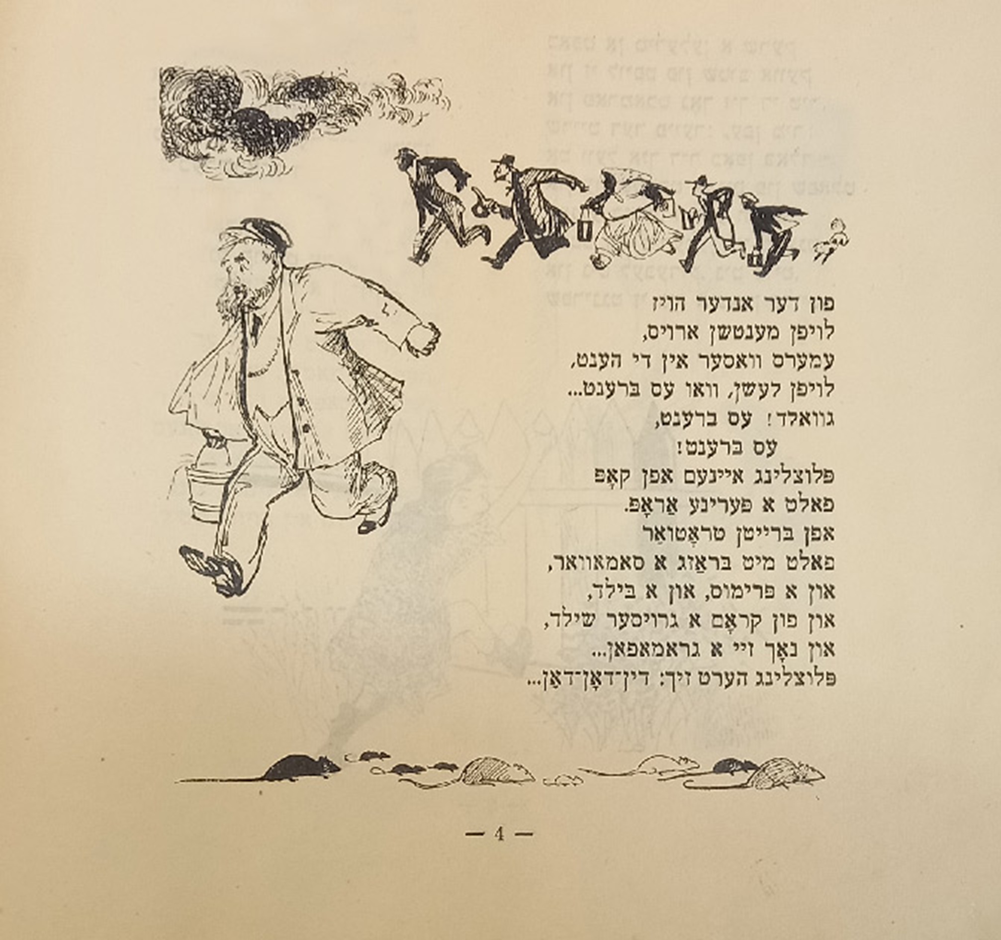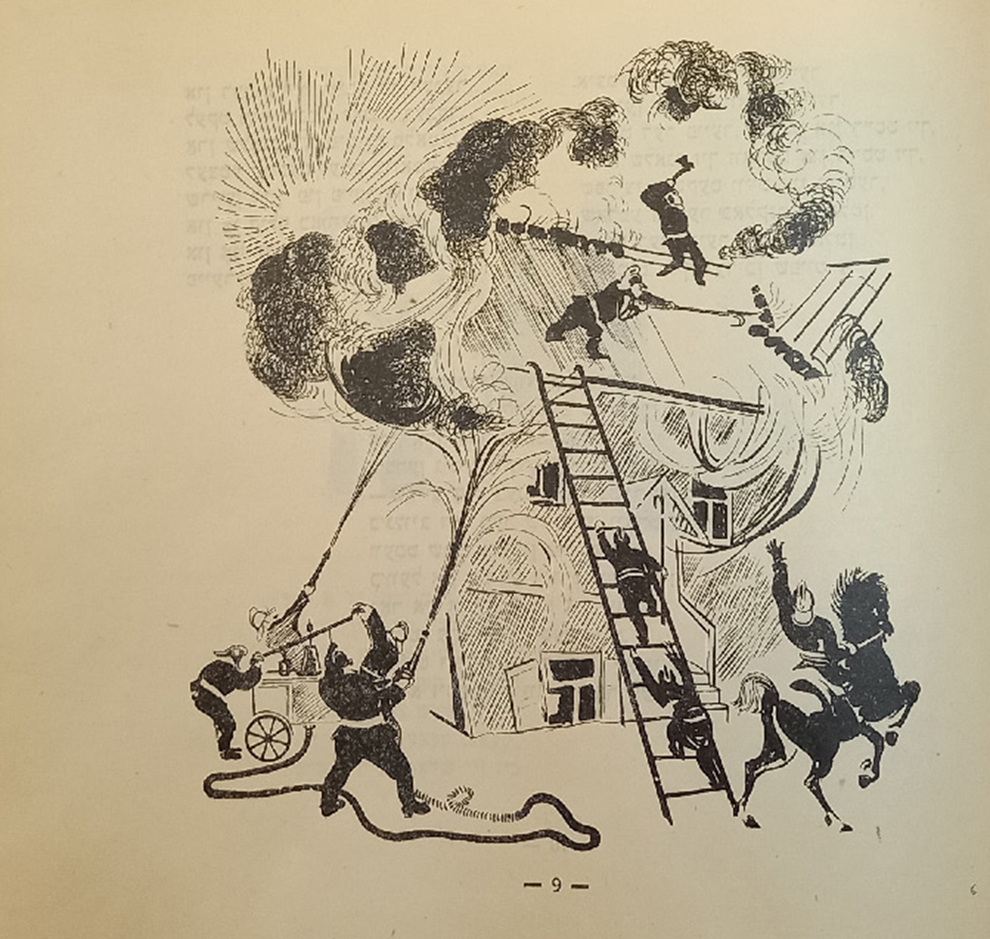 Фонды Морешет Самуил Маршак. Пожар Выходные данные: С. Маршак. А срейфе (Пожар). Художник Мендл Горшман. Москва: Шул ун бух, 1928 Описание Перевод — Розенблюм. Автор Горшман Мендл Период создания 1928 Правообладатель Российская национальная библиотека, Санкт-Петербург, Ассоциация исследователей еврейской культуры «Петербургская иудаика» Входит в выставки Еврейская иллюстрированная книга в СССР. 1920-30-е годы