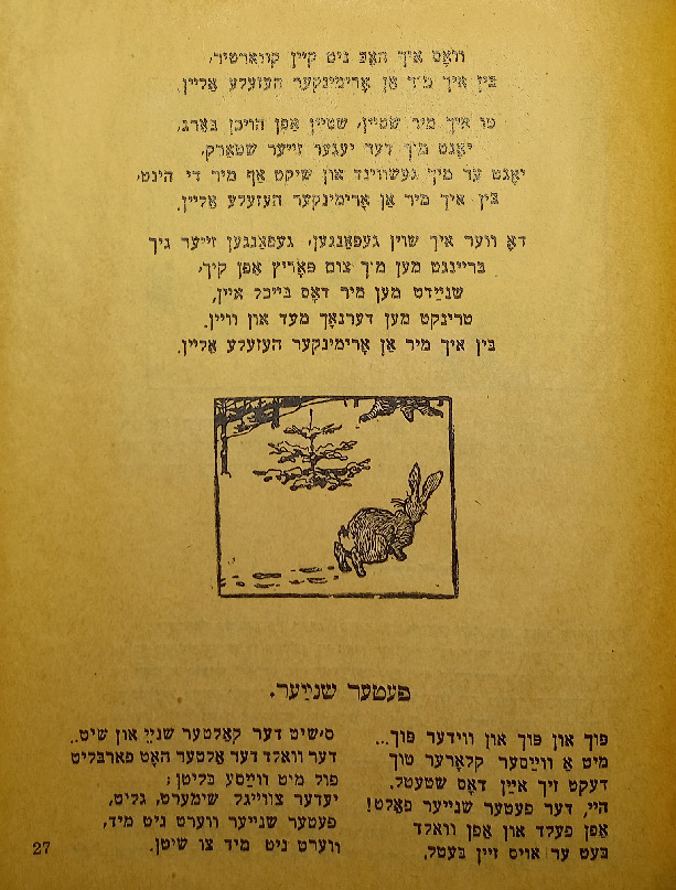 Выходные данные: Идиш. Литературный сборник для школы и дома. Составил Э. Спивак. Киев: Культур-Лиге, 1923
