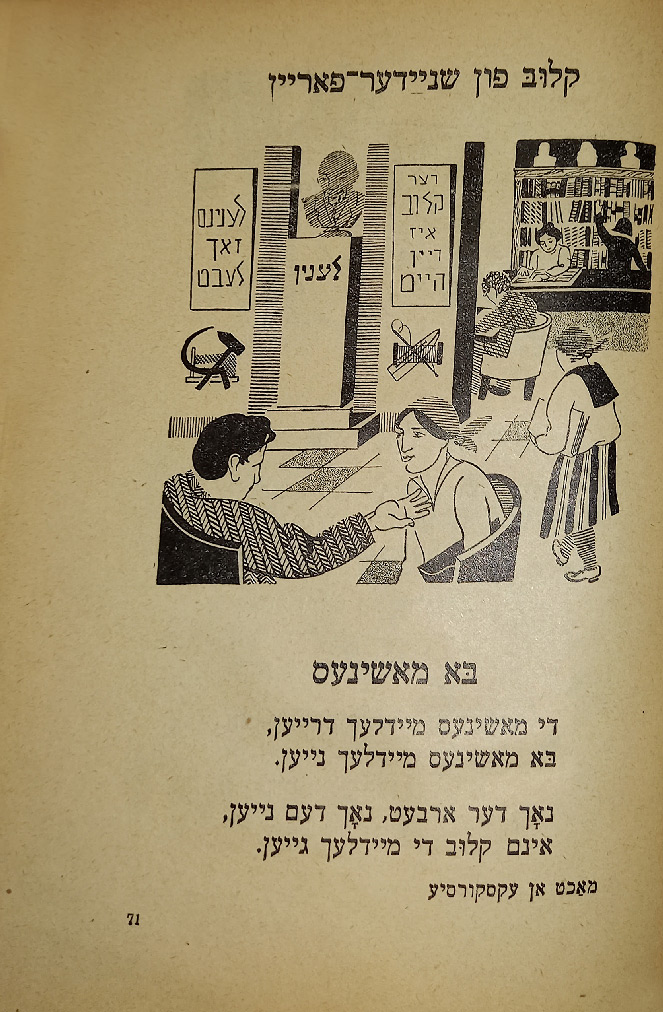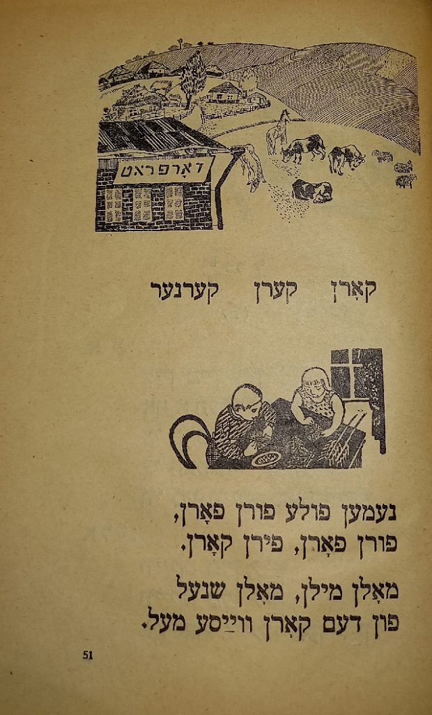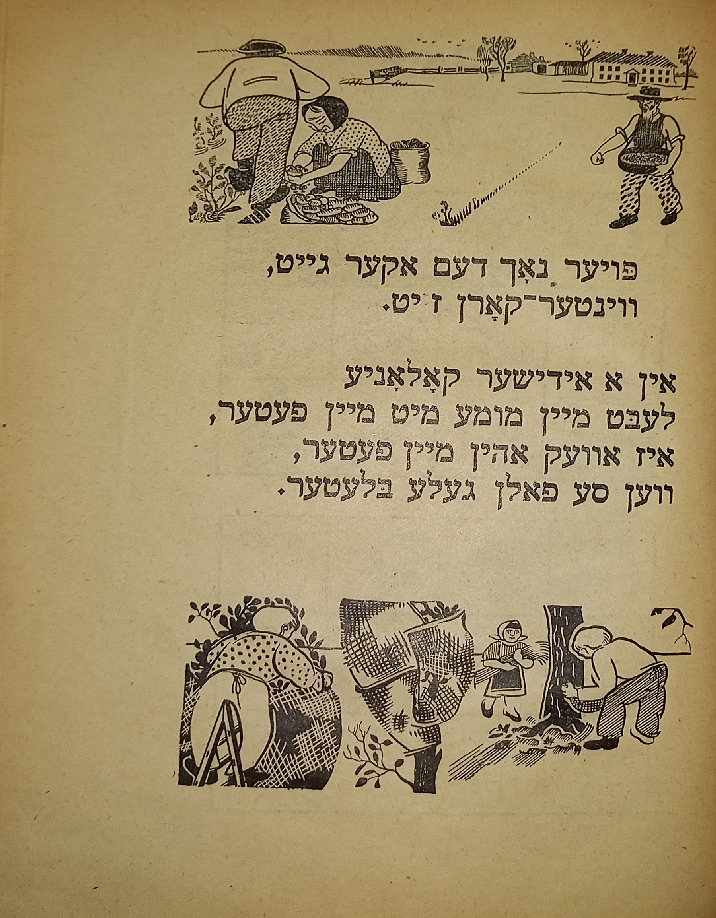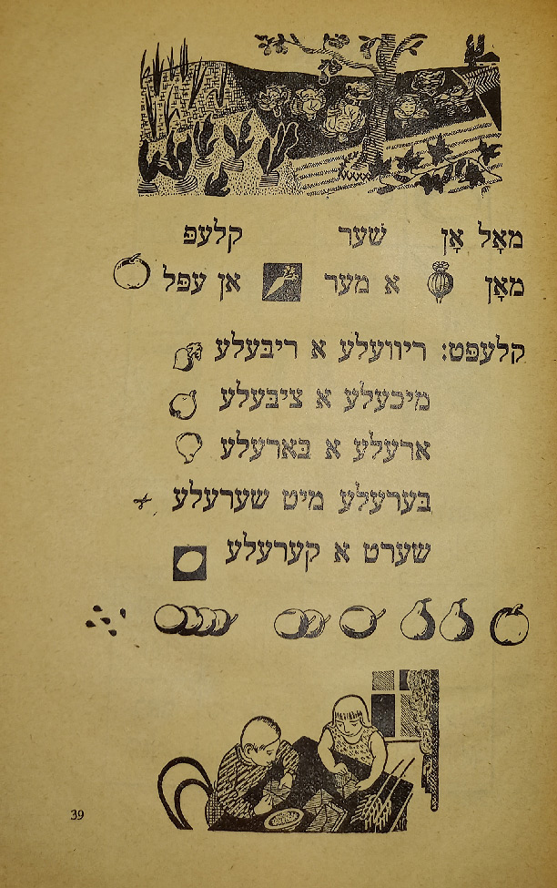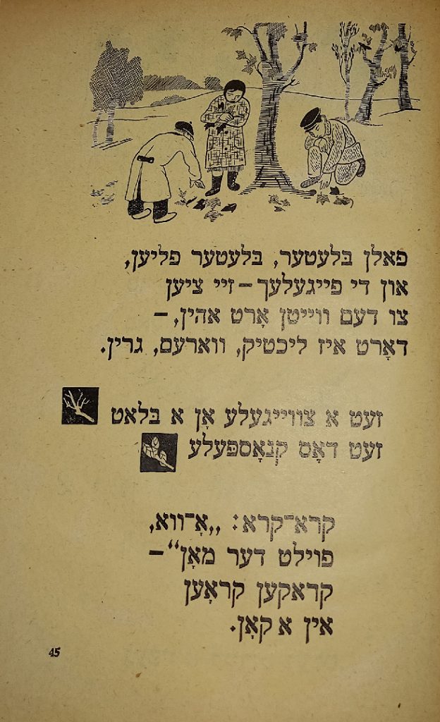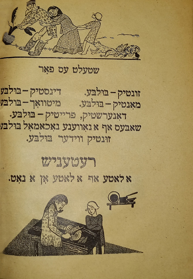 Фонды Морешет Эли Спивак. Играй и работай Выходные данные: Спивак Э. Шпил ун арбет (Играй и работай). Художник Н. Альтман. Киев: Культур-Лиге, 1928 Автор Альтман Натан Исаевич Период создания 1928 Правообладатель Российская национальная библиотека, Санкт-Петербург, Ассоциация исследователей еврейской культуры «Петербургская иудаика» Входит в выставки Еврейская иллюстрированная книга в СССР. 1920-30-е годы
